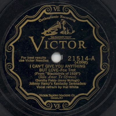 Johnny Hamp’s Kentucky Serenaders Perform I Can’t Give You Anything But Love b/w Johnny Johnson and His Statler Pensylvanians Sweet Lorraine